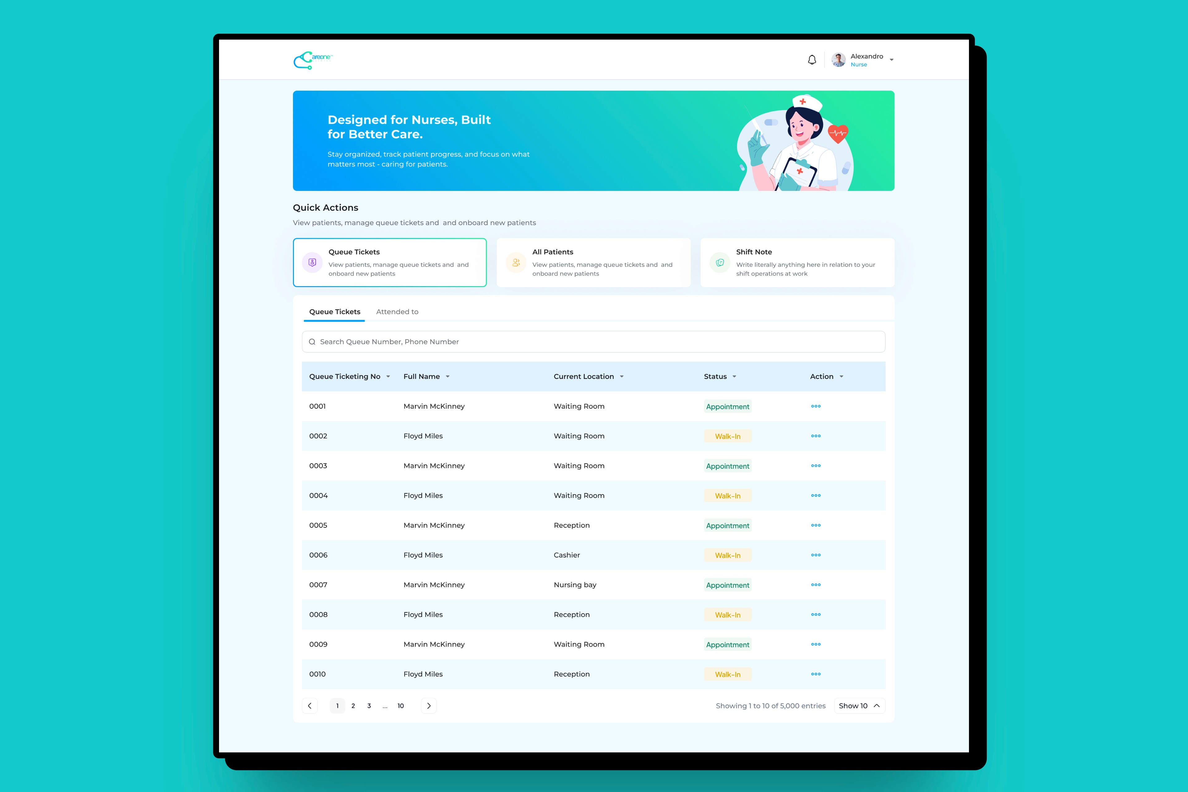 Solution: Designed role-specific queue views — one for patients (read-only), another for admins (interactive).