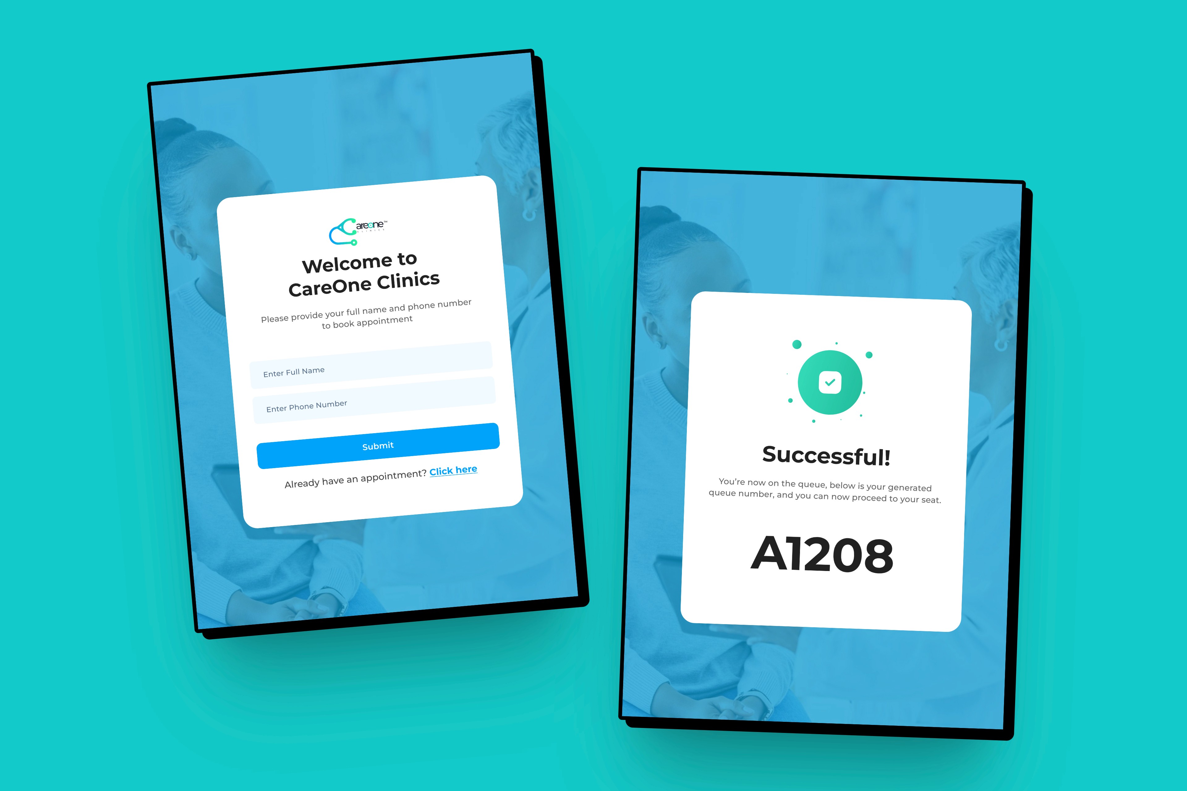 Digital Queue System | We designed a kiosk-friendly UI for patient check-in and QR ticket generation. Queue updates are shown on large screens in waiting rooms. |