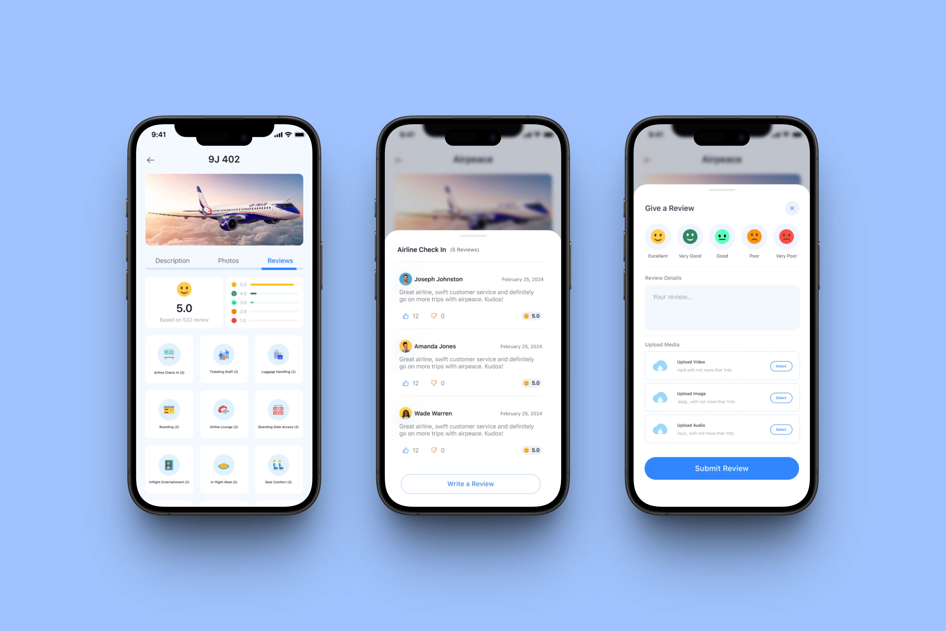 Integration with rating/review system for airline services.