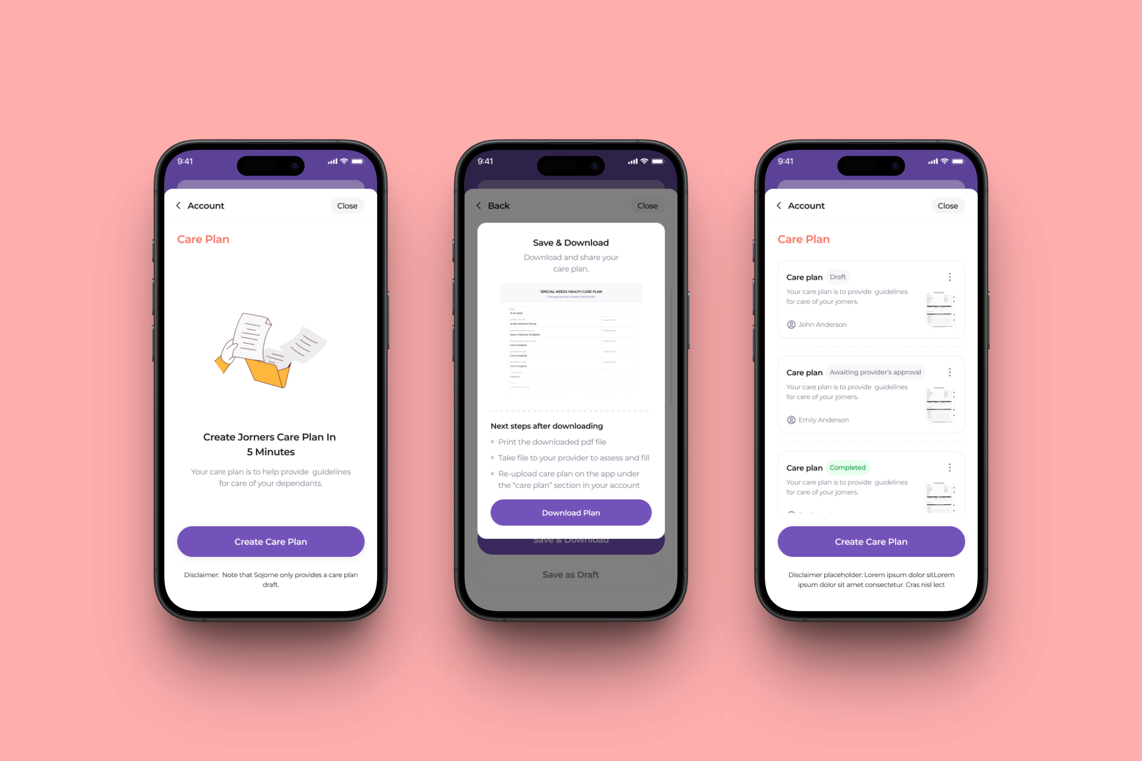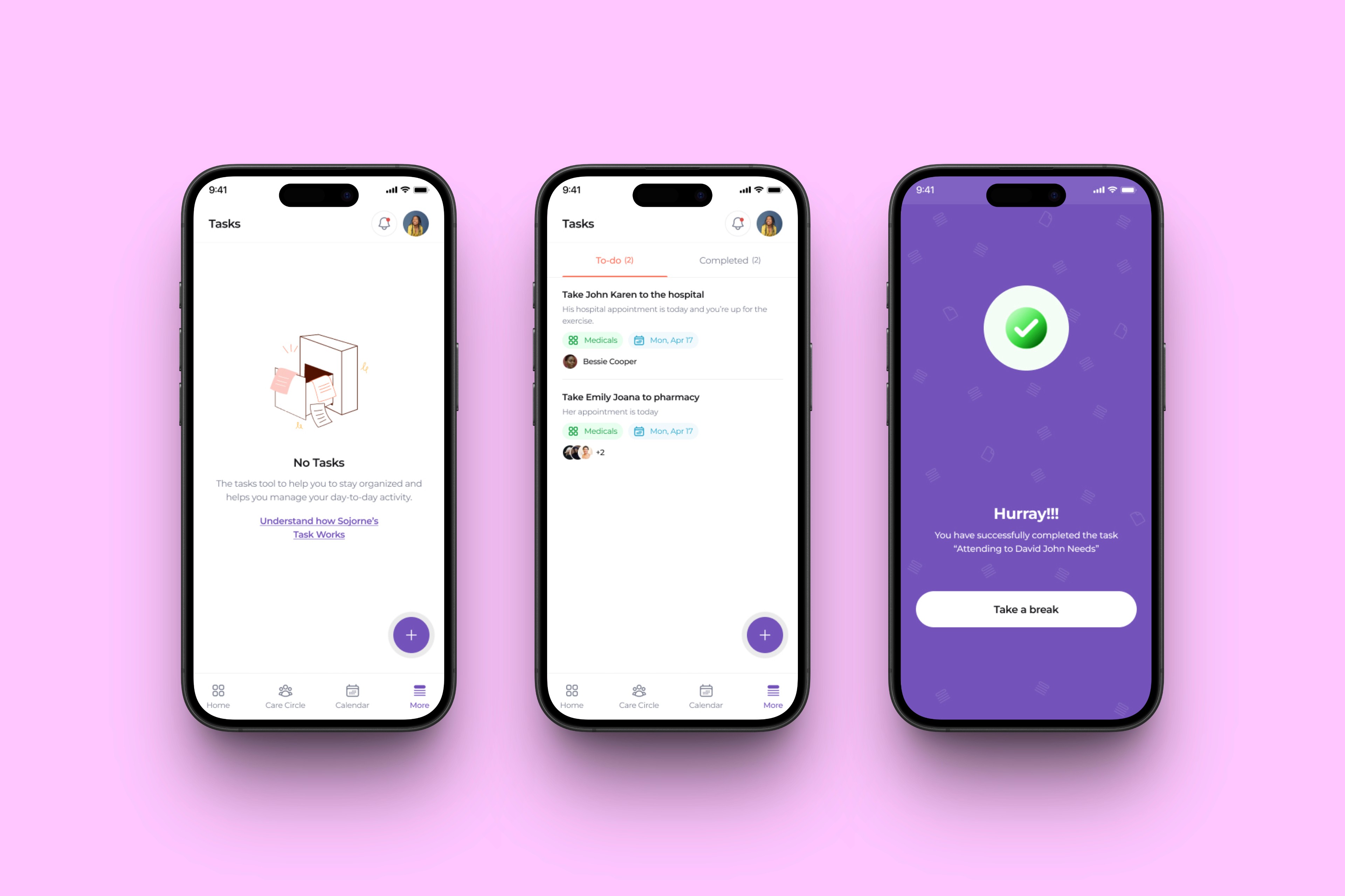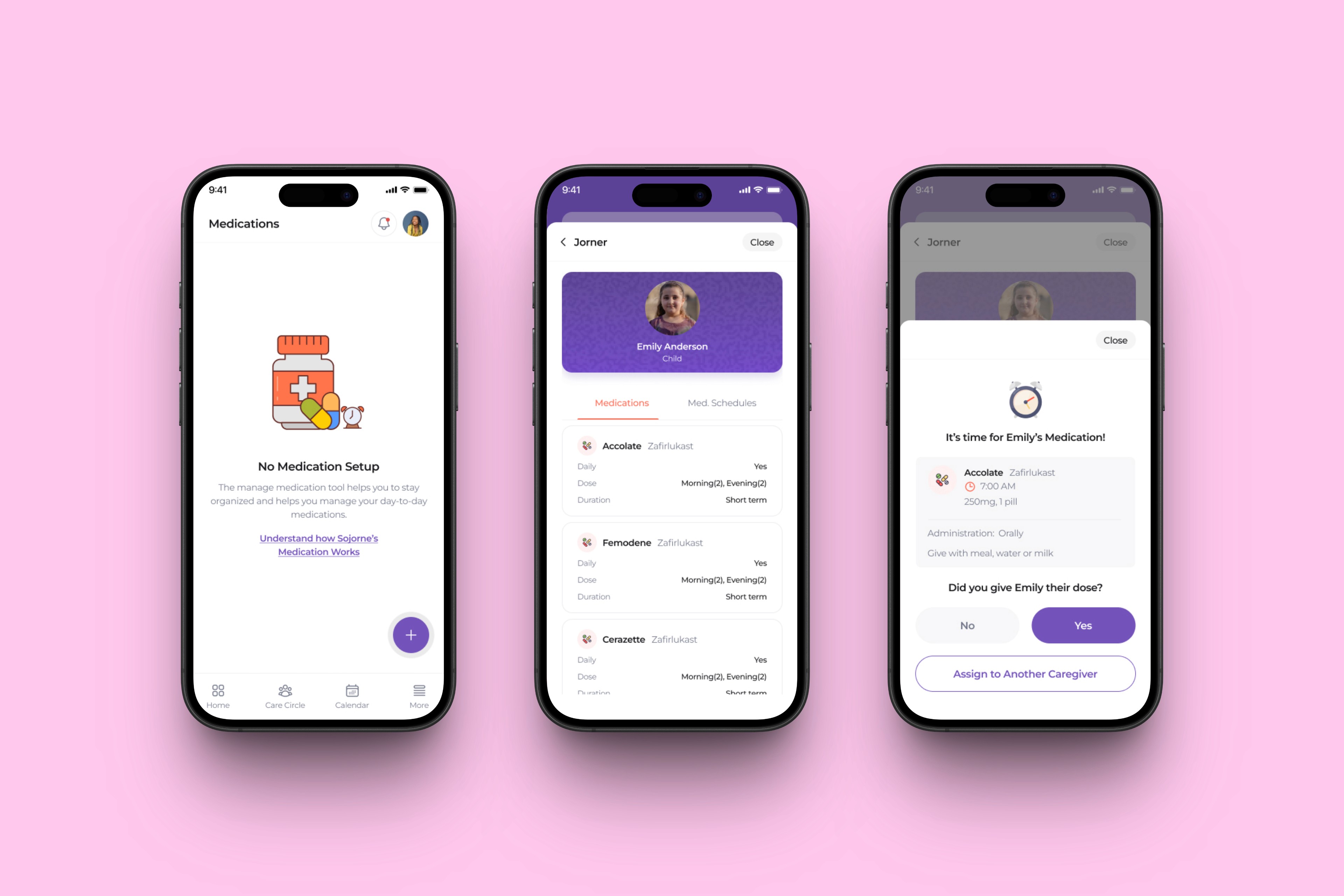 Sojorne aims to consolidate all essential caregiving tools into one seamless, user-centered mobile experience.