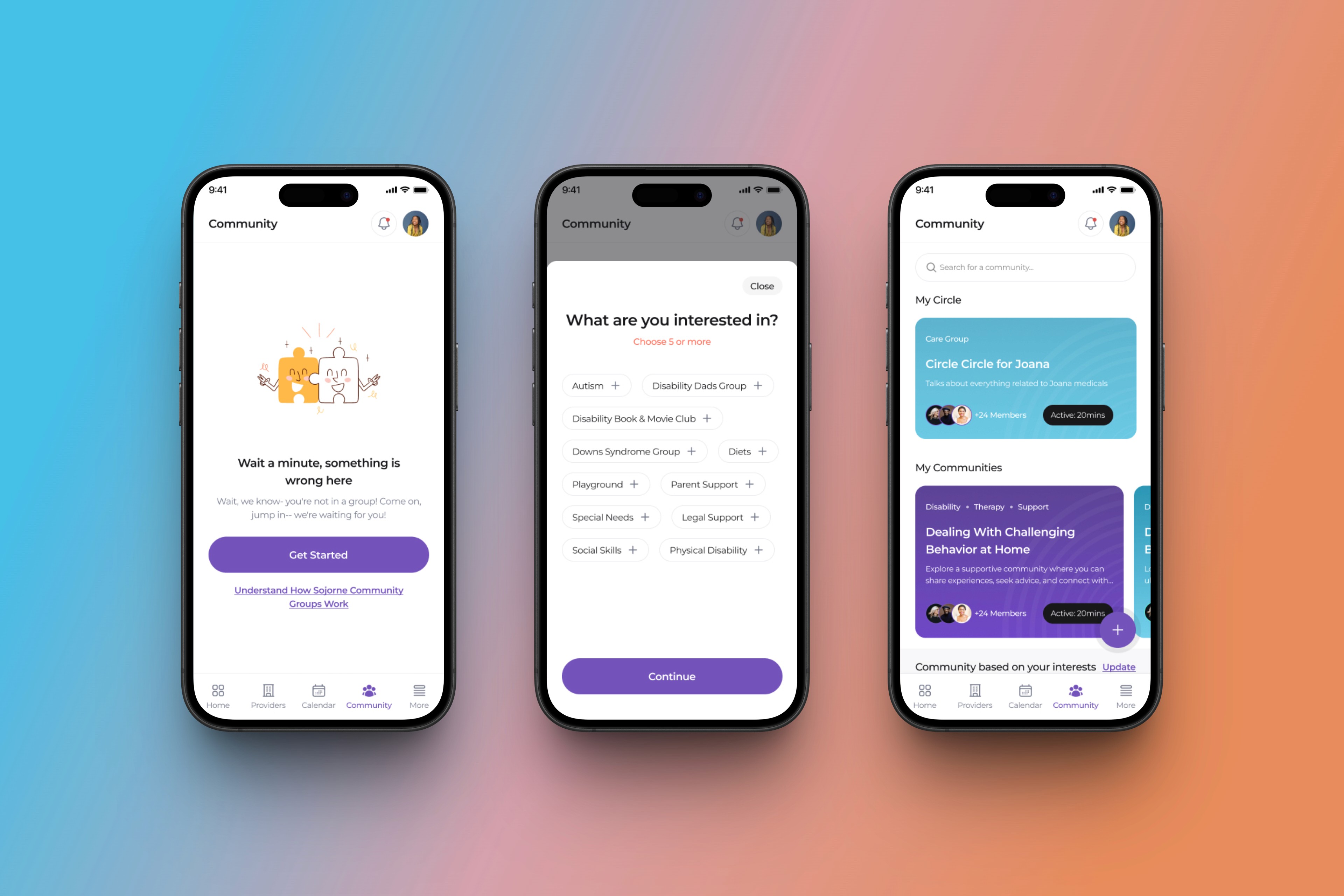 Working on Sojorne reinforced how emotionally loaded caregiving can be especially for parents of children with special needs. Designing with empathy wasn't just about clean UI. It required listening deeply, building trust through design, and acknowledging the emotional weight users bring into the app.